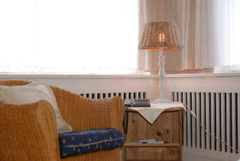 ° Firesideapartment for 2-5 persons consists of: 1 twin-bedded room, 1 three-bedded room, bathroom/WC, kitchen with dish-washing-machine, oven, a large living- and dining-room with a fire-place and large south-window to the sea. A sunny terrace and a seperate piece of garden with view of the sea are placed at your disposal.