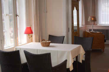 Every apartment has view of the sea and is equiped with Sat.-TV, telephone and partly with stereo system. Commonly used houshold-utensiles are present. A room with washing-machine and drier is also at your disposal. In the garden there is a separate seat with beach-chair and view of the sea for every apartment placed at your disposal. Next to the house there are parking places. Bed-linen, towels and clothes for dishes are available for fee.